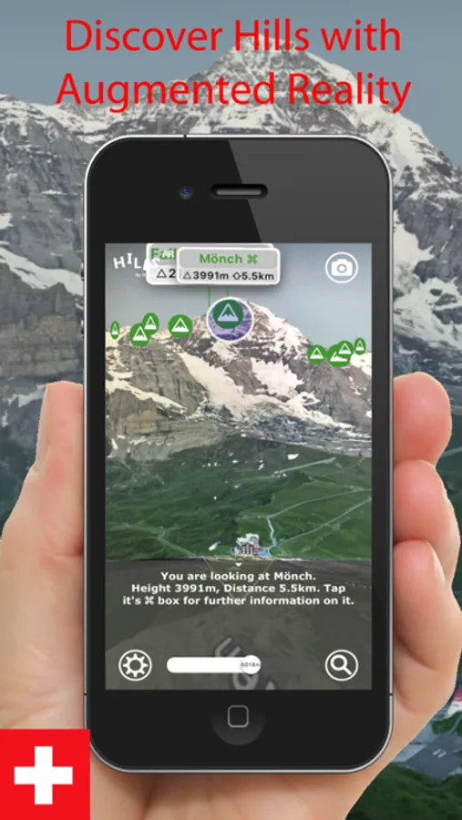 Switzerland Hills AR is an Augmented Reality Viewer for finding hills and mountains around you on you cameras screen when in Switzerland.