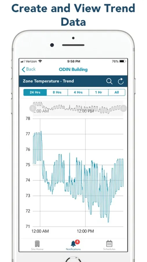 Easily and instantly connect to any BACnet enabled device or BACnet enabled building management system from anywhere, at any time, with a comprehensive, yet simplified user interface. Connect with ODIN is a complementary mobile app to the ODIN server software installed at building sites, which then connects to the cloud for access, continuous updates, storage and backups.