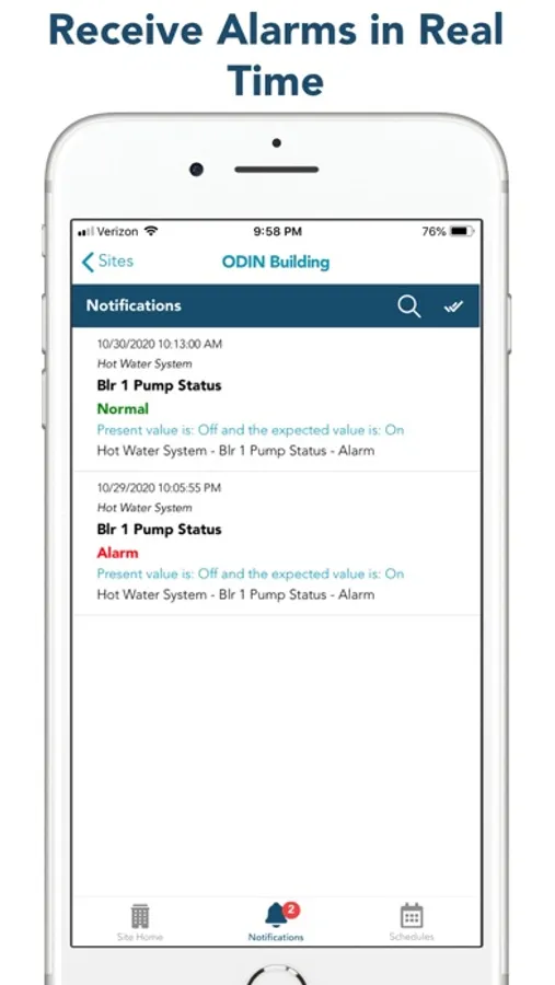 - Provides a list of unacknowledged notifications for ease of identifying current building issues