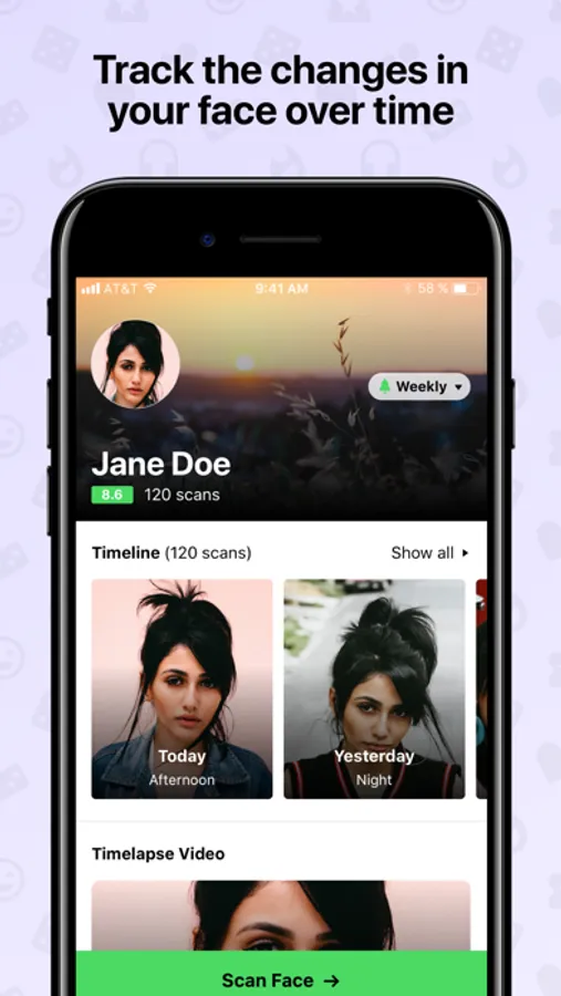-- FaceTrack automatically generates a fun Time-lapse of your changing face with every scan, which you can see whenever you want