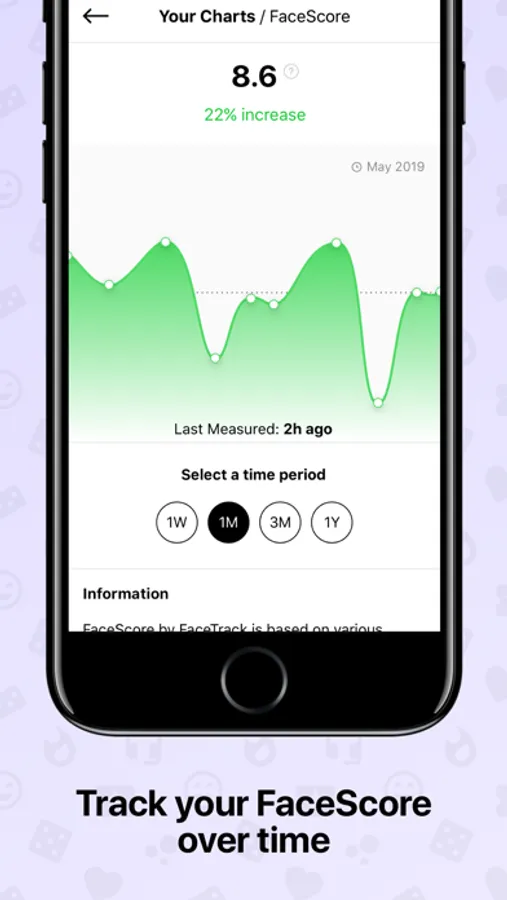 -- FaceTrack gives you a FaceScore* after each scan which is a mathematical quantification of the quality of your face. You can review your FaceScore in the charts section of the app any time