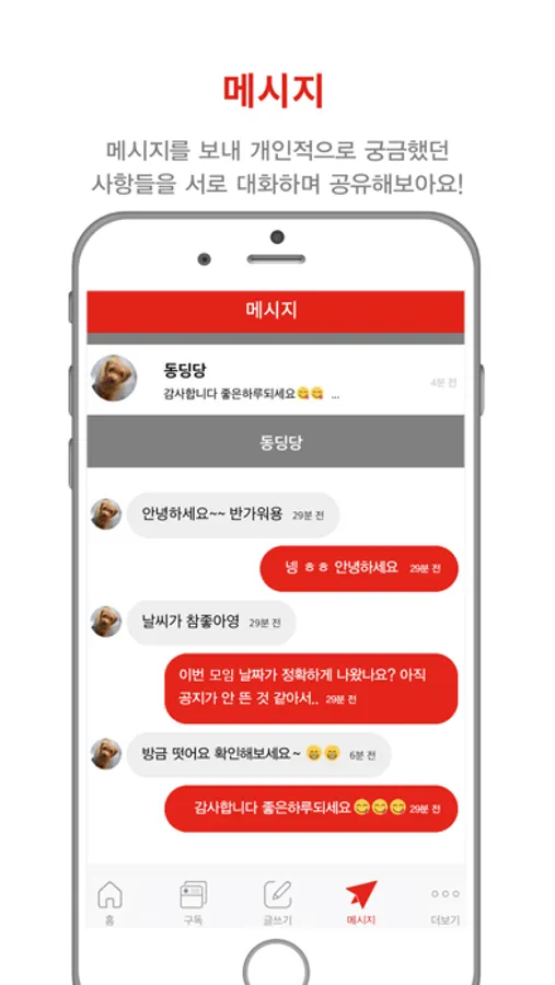 메시지 - 메시지를 보내 개인적으로 궁금했던 사항들을 서로 대화하며 공유해보아요!