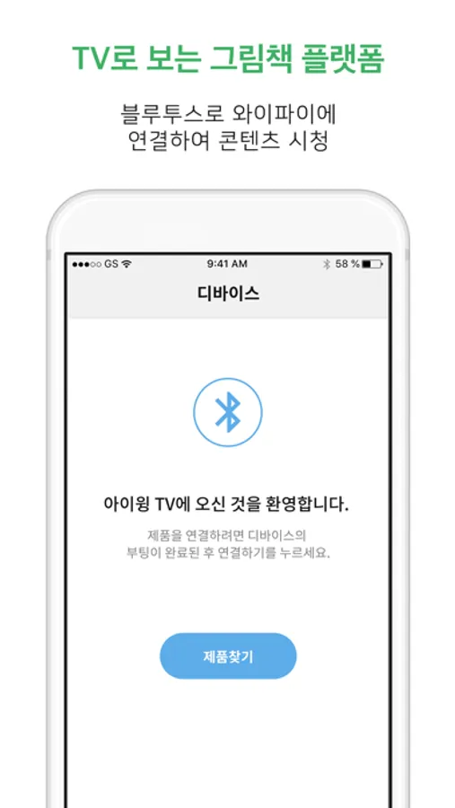 6. ‘제품찾기’버튼을 터치하고 검색된 '아이윙TV'기기에 접속 합니다.