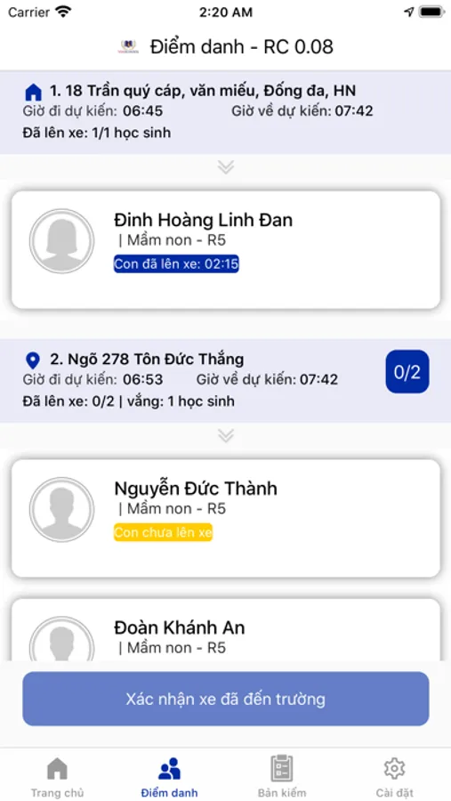 Ứng dụng dành cho giám sát viên xe buýt học sinh của VinSchool.