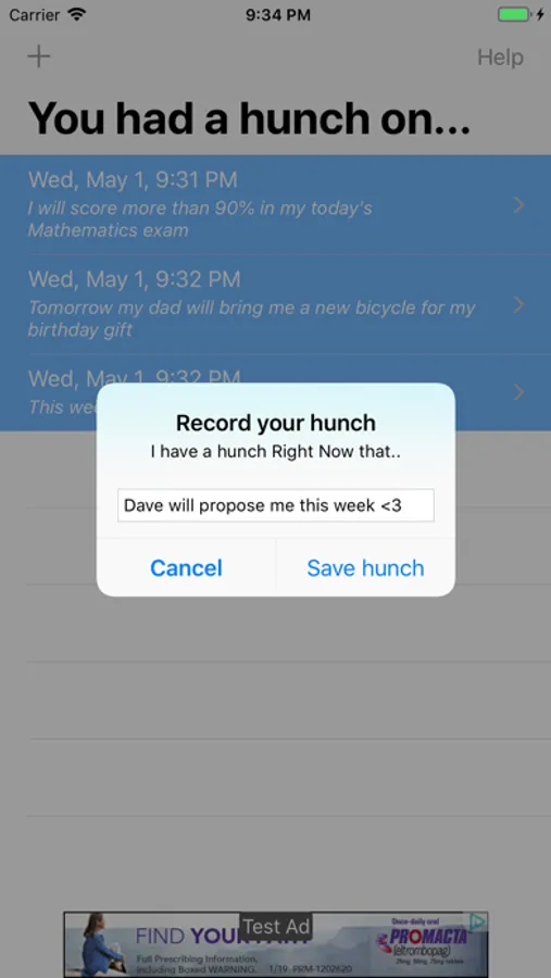 Now you can record your hunches and show them that you said so!
