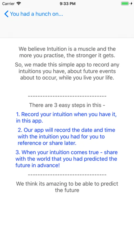 So, we made this simple app to record any intuitions you have, about future events about to occur, while you live your life.