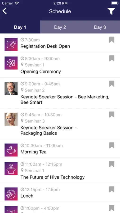 * Program Agenda - view the full agenda and related information (session times, room names, speaker info, and more).