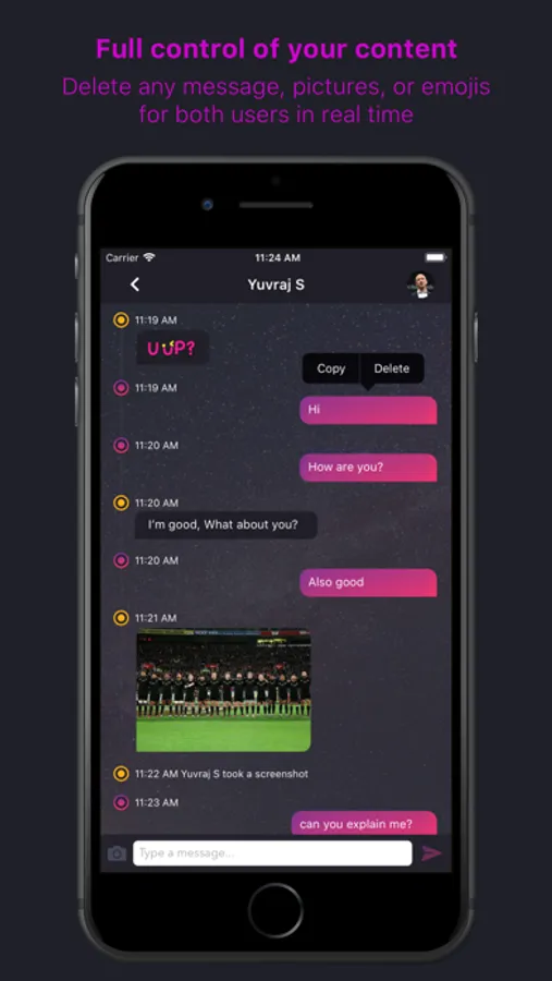 • Allow you to delete your messages and pictures instantly across sender and receiver