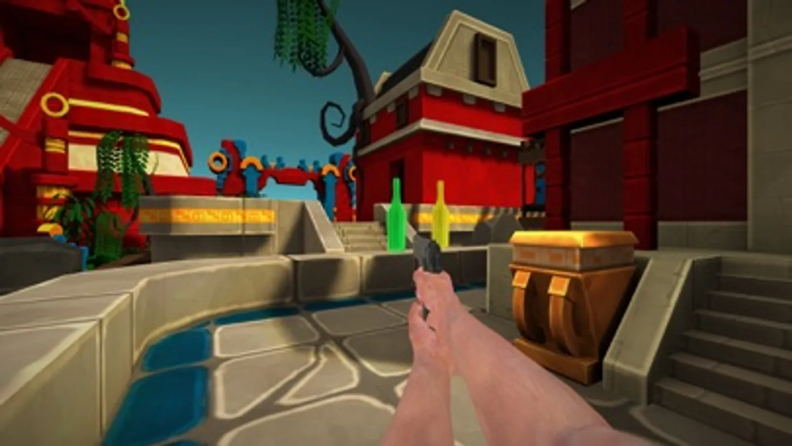 Grab the gun, aim your target and shoot to smash glass bottles.