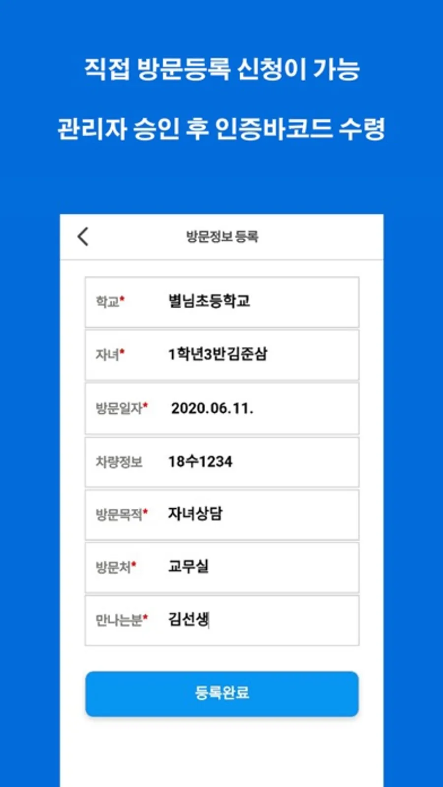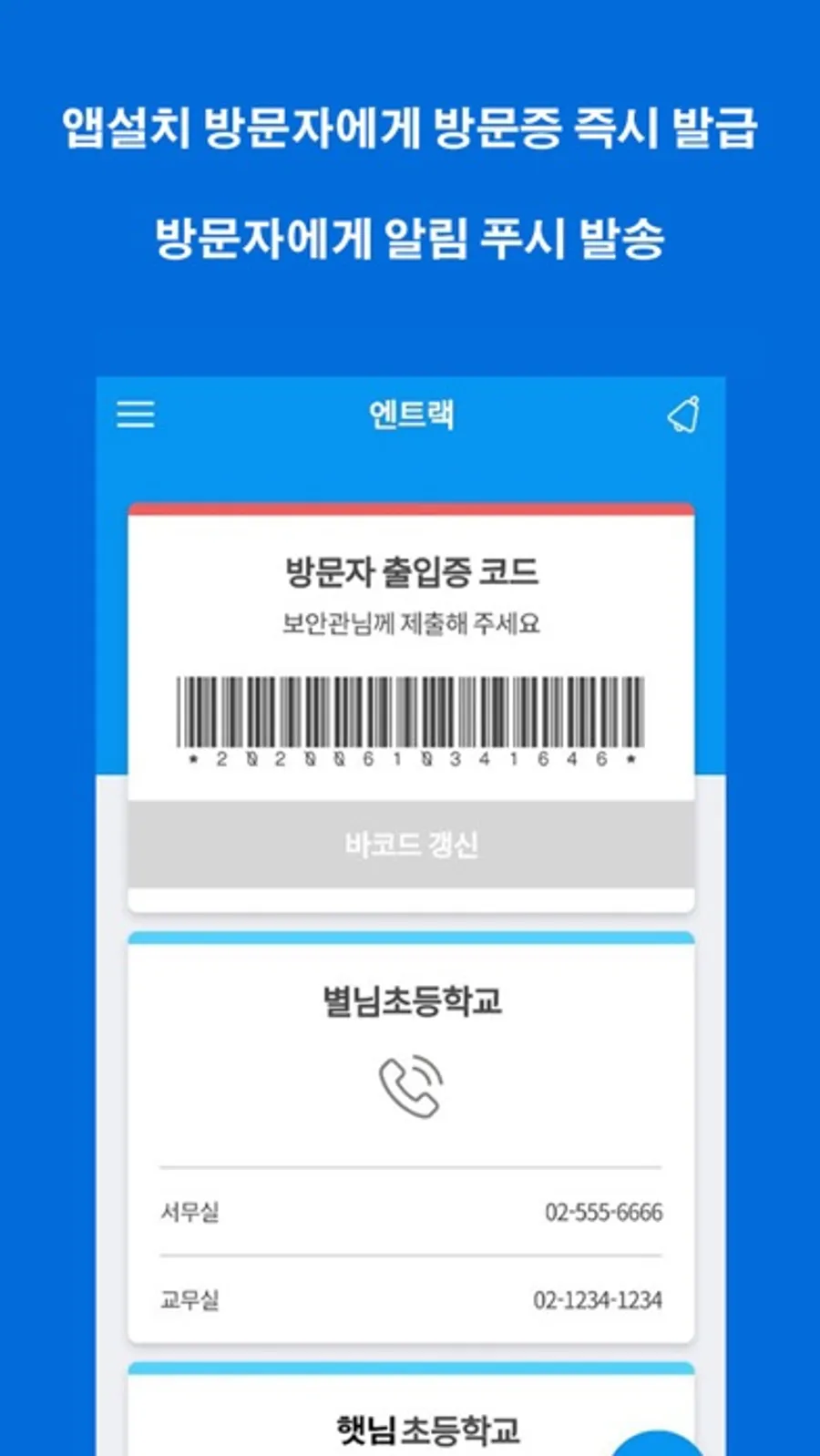 1. 학교에 방문하는 모든 외부인(학부모포함)은 '사전출입등록제'시행령에 의해, 학교에 미리 등록(예약)을 해야합니다. 엔트랙 앱은 이를 손쉽게 할 수 있도록 기획되었습니다.