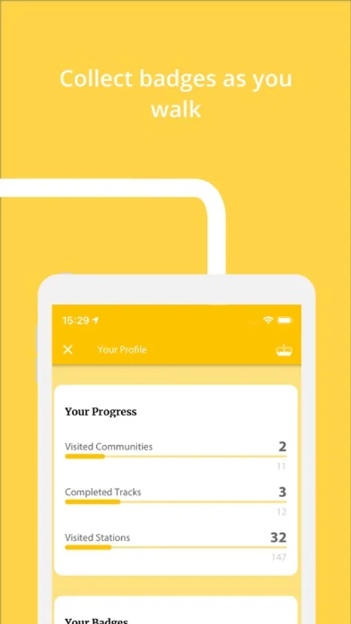 - Collect badges confirming the municipalities you have passed through, sections of the trail you have hiked and points of interest you have visited – and compete with your friends to see who has the most