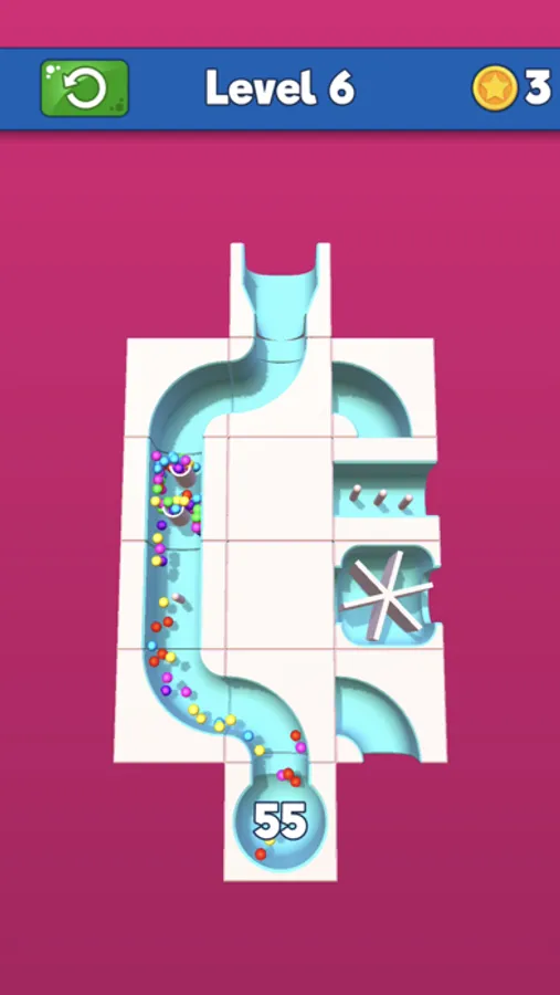 It's fun and simple. Just get the balls through the pipes from the top to the bottom. All you need to do is rotate the pipes to find a way through. Use gravity, turn the pipes and complete each level. It's a pipe dream and very satisfying!