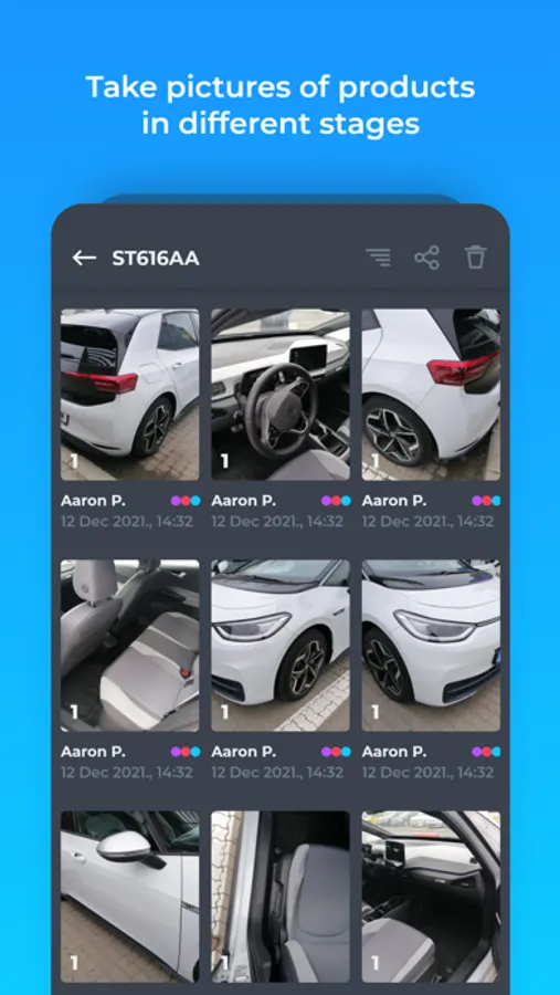 Any user can take multiple pictures of products for any purpose: at reception of a product, for warranty, for fixing a product, for collaboration with other companies..