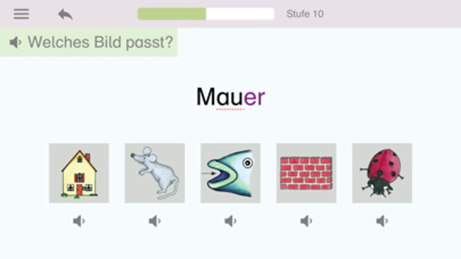 - Sukzessive und systematisch wird das Lesen von Wörtern mit seltenen, schwierigen und/oder mehrgliedrigen Graphemen (ö, au, sch, ei ...) geübt.