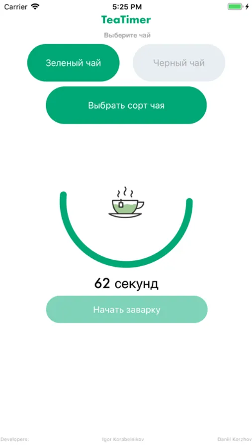 Тогда представляем вам приложение TeaTimer, вам наш дебютный совместный проект с профессиональным дизайнером и разработчиков интерфейсов — Даниилом Коржовым.