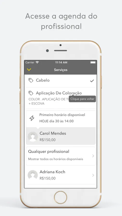 ► Marque horário com seu profissional favorito quando quiser, mesmo que você esteja no trabalho ou fora do horário comercial.