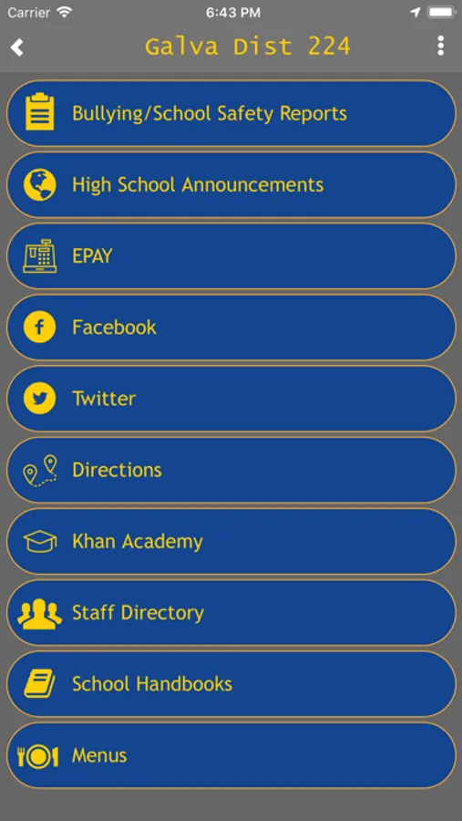Galva Community Unit School District 224 app where you can find all your essential information including academics, sports, calendars, menus and etc. Keeping you up to date with current information right at your fingertips.