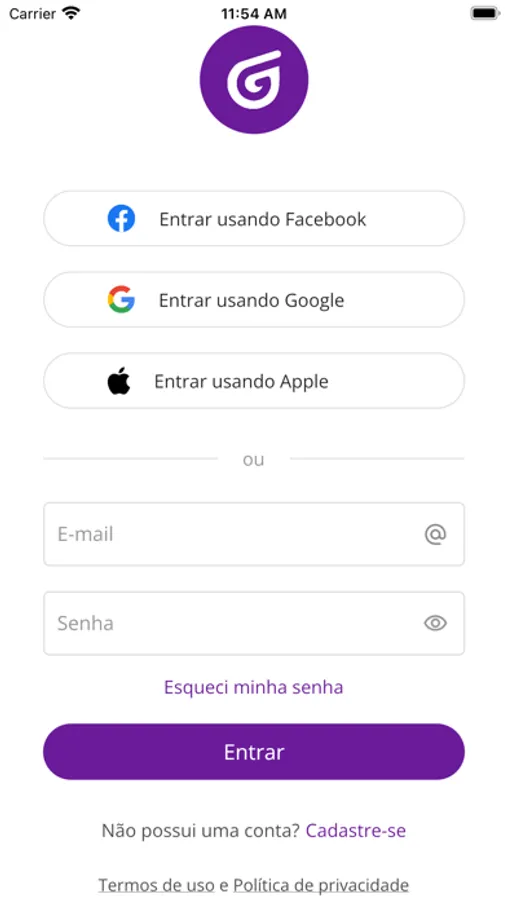 Primeira versão do aplicativo, contendo as seguintes funcionalidades :