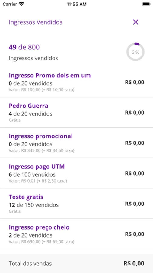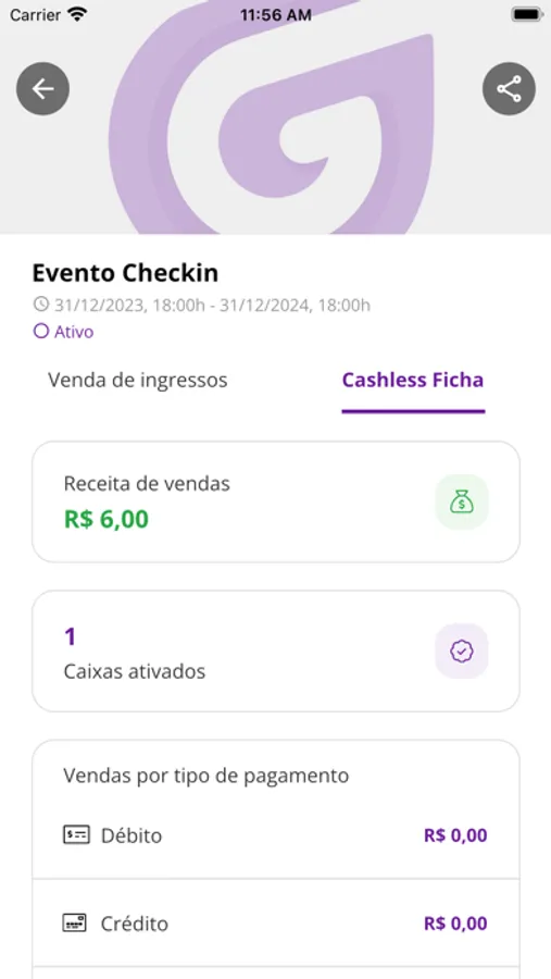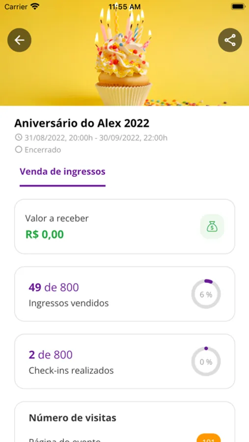 Estatística do evento (quantidade ingressos vendidos , valores e check-ins realizados)