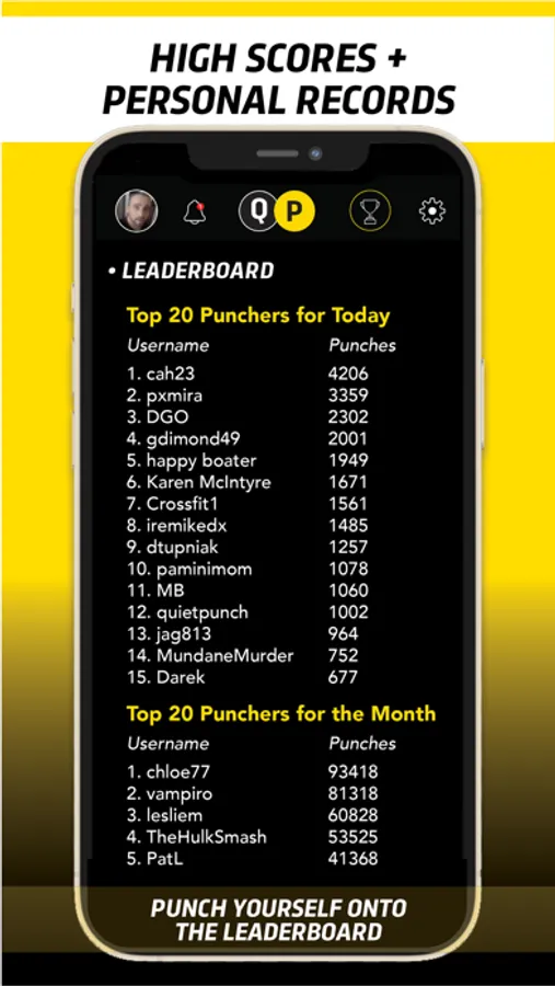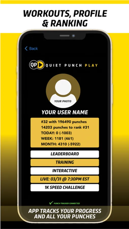 Quiet Punch Play tracks your punches and achievements and allows you to compare yourself and compete with other users.