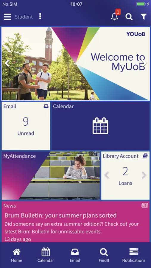 MyUoB is the official student app for the University of Birmingham - your go-to place for key University services, wherever or whenever you need them.