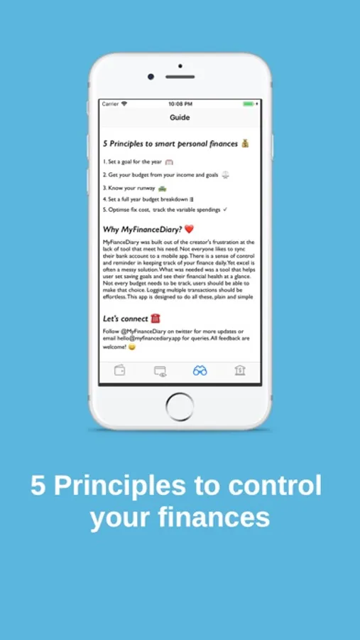 MyFinanceDiary is designed for effortless transaction logging and goal setting. With MyFinanceDiary, user have a mini assistant so they focus on daily life while reaching their saving goal.