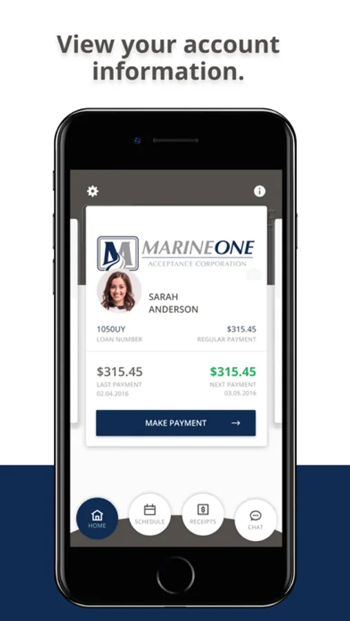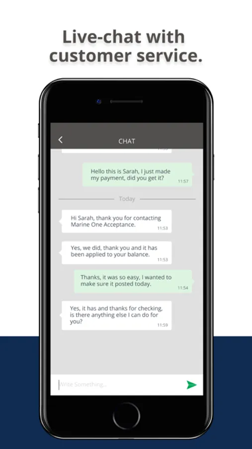 Make and schedule your Marine One Acceptance payment in real-time. The Marine One Acceptance App is the easiest way to make your payment, see your payment history, and chat with your provider. It's fast and easy.