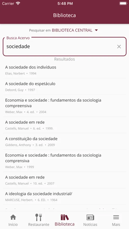 - ACESSO ÀS INFORMAÇÕES DAS BIBLIOTECAS: Consulte o acervo das bibliotecas da Instituição e acompanhe seus empréstimos;