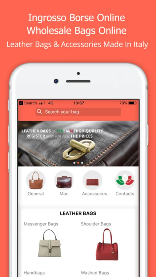 The Fior Di Loto app connected to e-commerce (B2B) www.ingrossoborseonline.com has a wide range of categories of leather bags and accessories (General Leather Bags, Shoulder Bags, Messenger Bags, Washed Bags, Backpacks , Bags, Doctor's Bags, Work Bags, Shoulder Bag And Men's Shoulder Bag, Wallets, Belts) All in genuine true leather made in Italy.