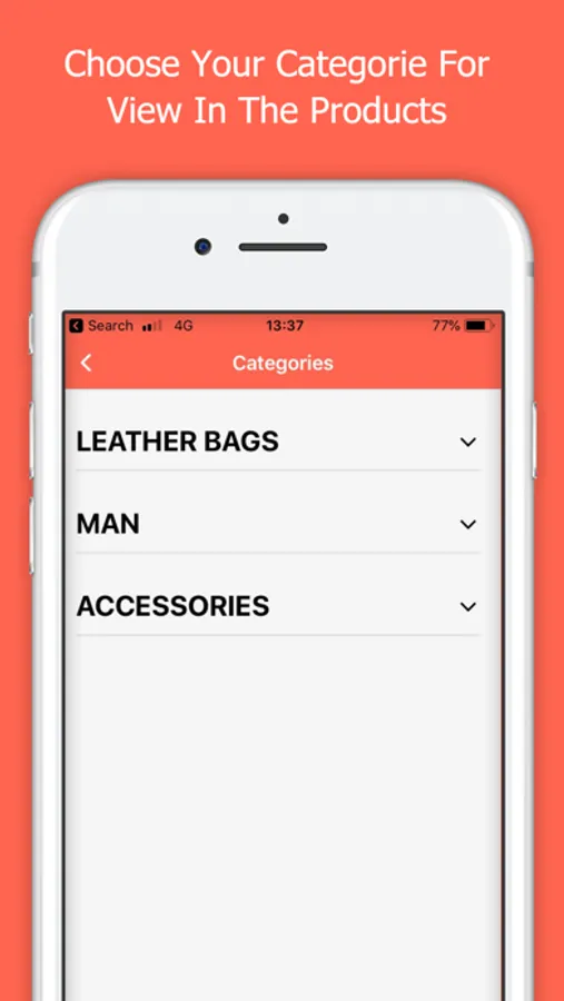 In the Products section, there are all the bags updated daily, to change the category, you have to just go to the top left corner and press with your finger and a new window will appear where you can choose the various categories.
