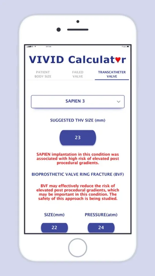 • The calculator describes whether a condition is associated with high risk for elevated post procedural gradients that may be of benefit for supra annular device implantation.