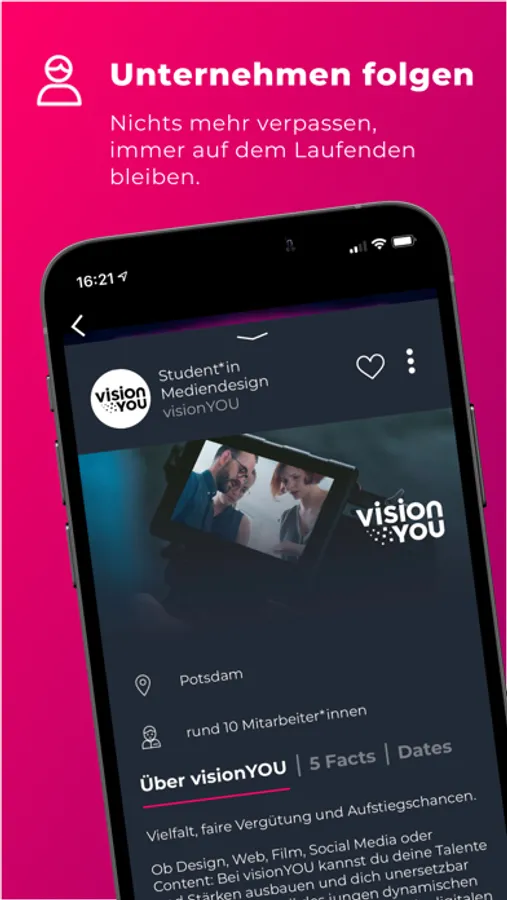 In weniger als 60 Sekunden weißt du, ob du etwas magst oder nicht. Warum nicht auch in 60 Sekunden herausfinden, ob ein Unternehmen zu dir passt? Svipe dich durch die besten Job-Videos und lass dich zu der Karriere inspirieren, um die dich andere beneiden!