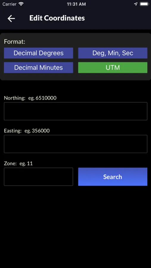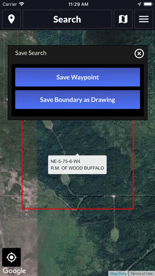 -Get the Legal Description (Quarter Section) of your current position, by tapping on the red "vehicle" icon