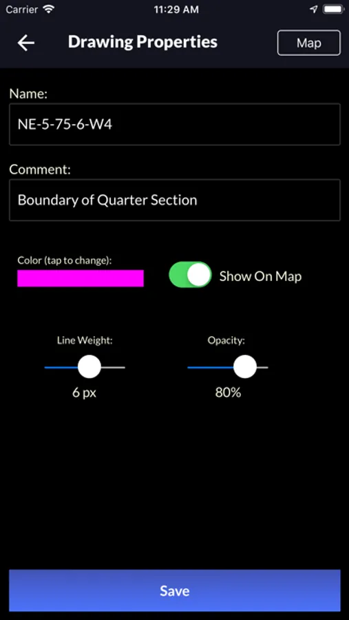 -Save Quarter Section boundaries on the map, so you always know which quarter section you're in, even when the field spans many quarters.