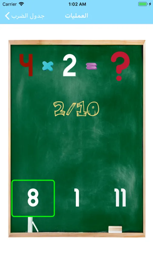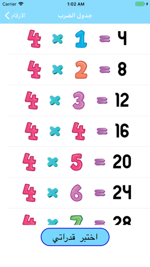 يمكنك ايضا من اختبار درجة حفضك لجدول الضرب
