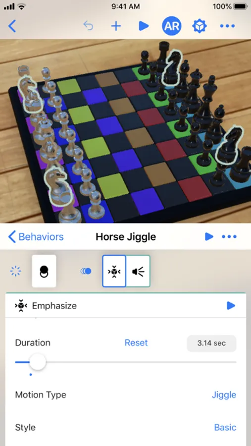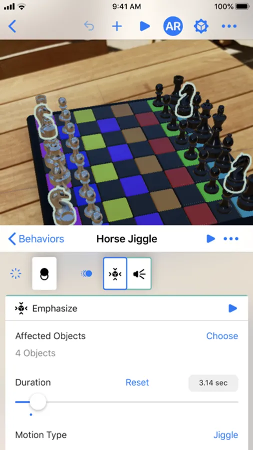 • Add animations that let you move, scale, and add emphasis like a ‘wiggle’ or ‘spin’ to virtual objects, without having any animation experience.