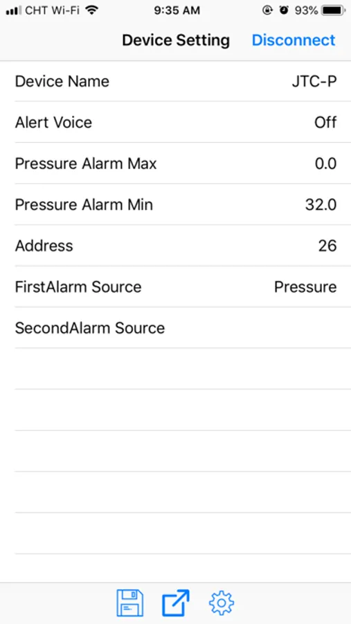 ● Parameter setting - Device name, alarm upper/lower limit, output, etc.