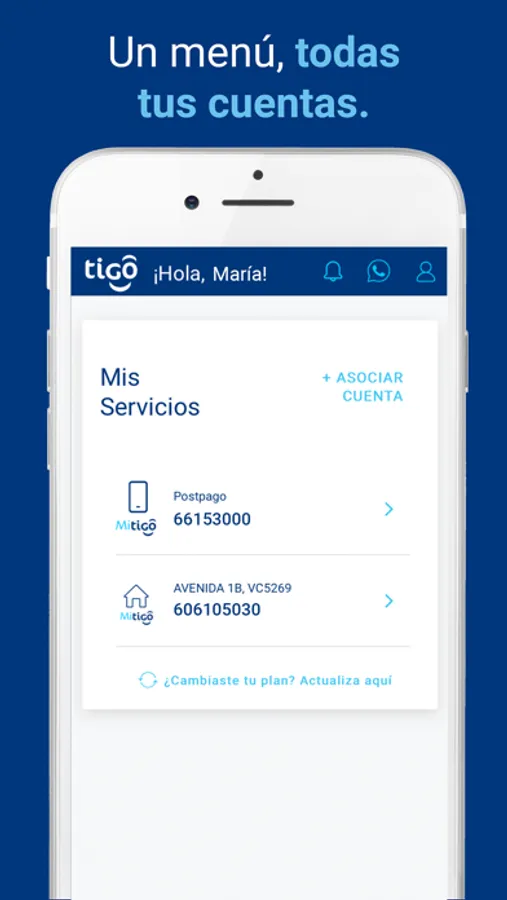 Con Mi Tigo App, podrás administrar tus servicios de telefonía móvil Prepago y Postpago al revisar tus consumos de datos, minutos y SMS; consultar tu saldo disponible, recargar en línea, comprar paquetes de datos, activar otros servicios en tu plan y pagar facturas con tan solo un clic.