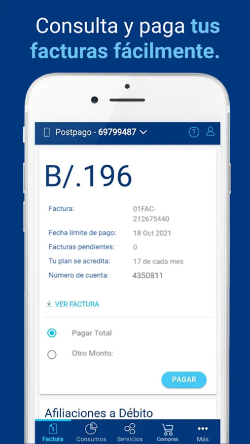 •Consultar y pagar tus Facturas: Consulta tus facturas actuales e históricas.