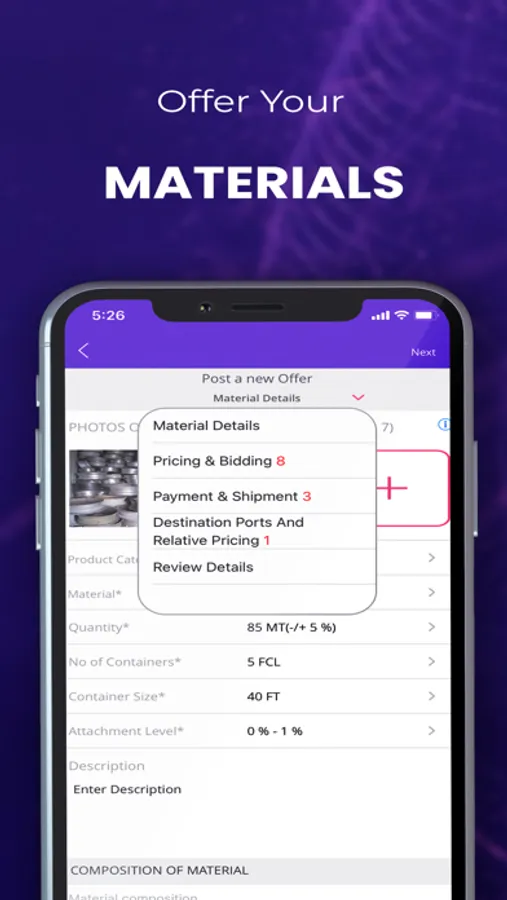 Reach the world with your Material Offers - Post offers of the material you want to sell, receive competitive bids from across the world, negotiate and sell with a single click