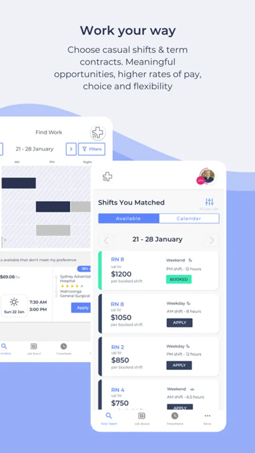 Earn ratings and testimonials for every shift and go from on-demand to in-demand.