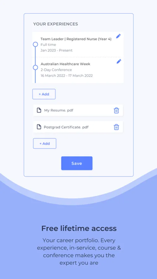 Build your online resume and store all your certifications, training and other healthcare documents free for life.