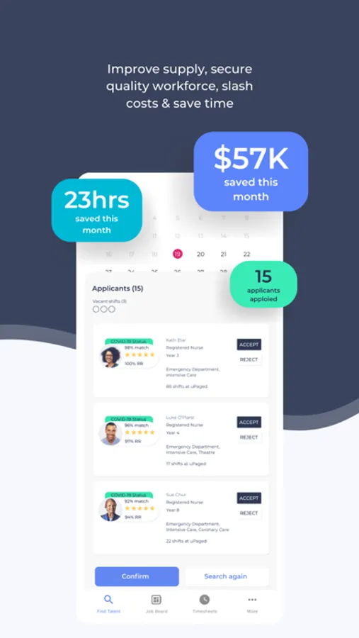 Instantly fill casual healthcare shifts, term contracts and permanent placements. Try-before-you-buy and seamlessly transition casual talent to your permanent workforce.