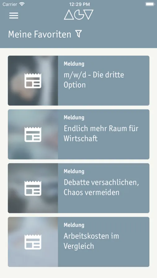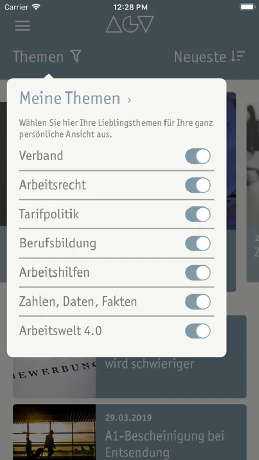 Die App Mein AGV ist ein Kommunikations-Tool, maßgeschneidert für Ihren Bedarf: Sie erhalten ausschließlich für Sie relevante und interessante Informationen. Wie das geht? Sie stellen sich ganz einfach Ihren persönlichen Themenmix zusammen – und werden dann auf Wunsch direkt via Push Nachricht über wichtige Themen informiert.