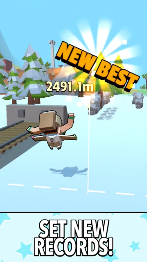 Tap to Jump on the mark and soar into the sky, make sure you use all your jetpack fuel to go the distance.