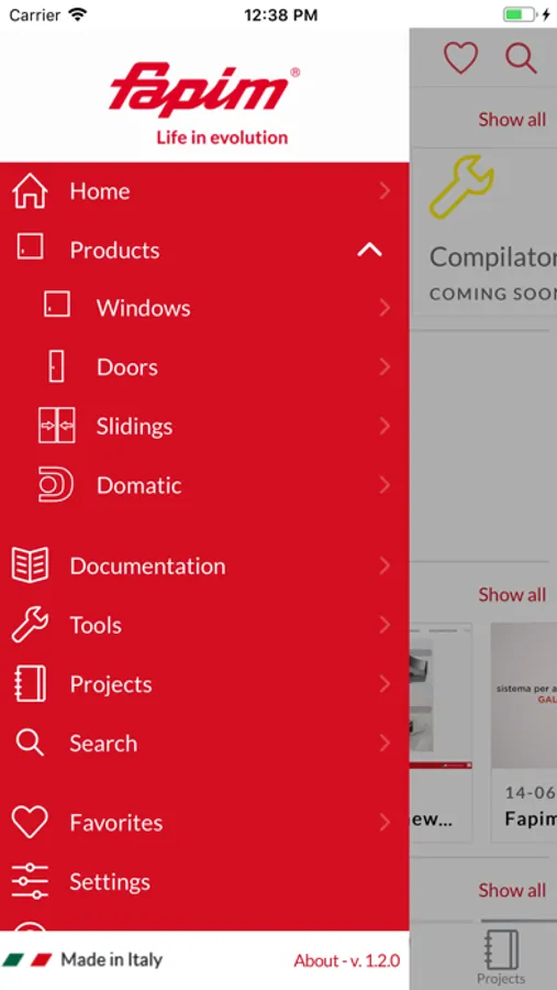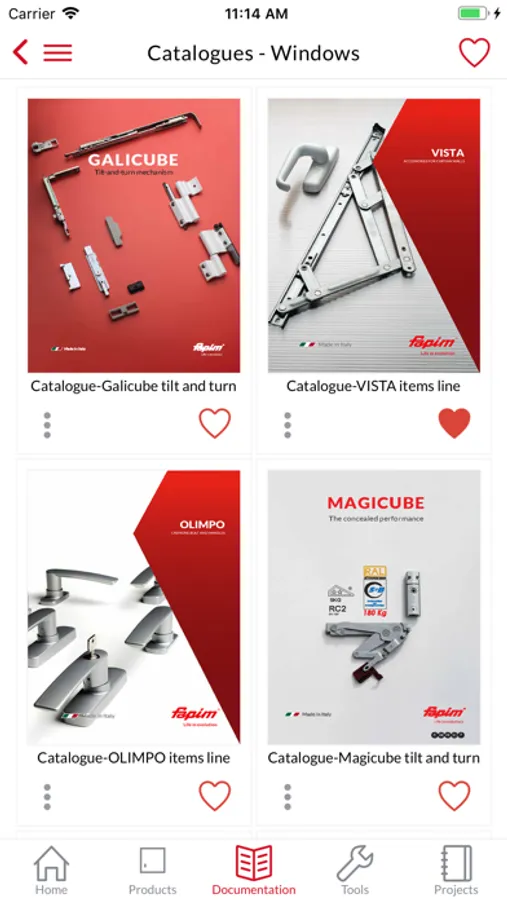 The documentation in the App is also available in a dedicated way to facilitate searches and add the documents you are looking for to the list of favourites or projects.