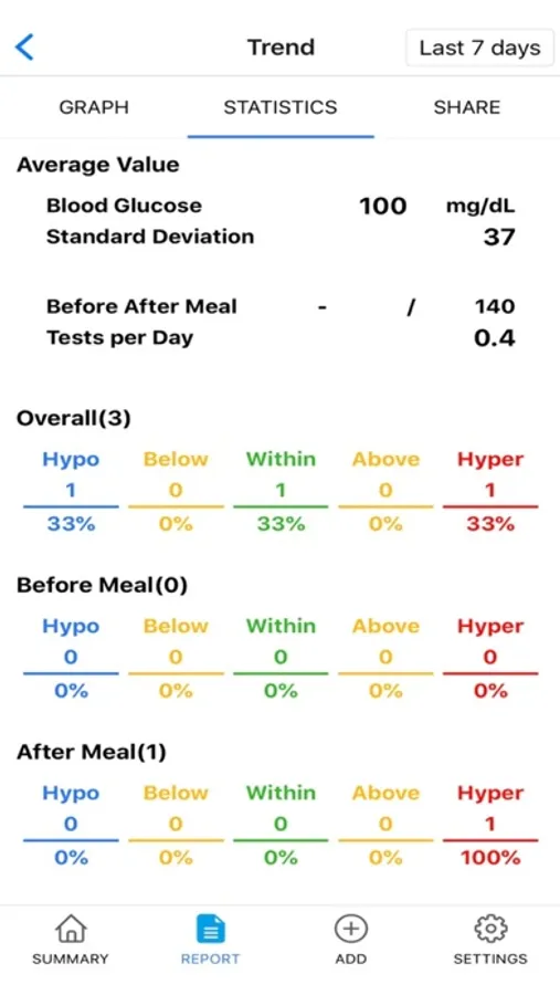 • Sharing your blood glucose data report with others by sending email or SMS