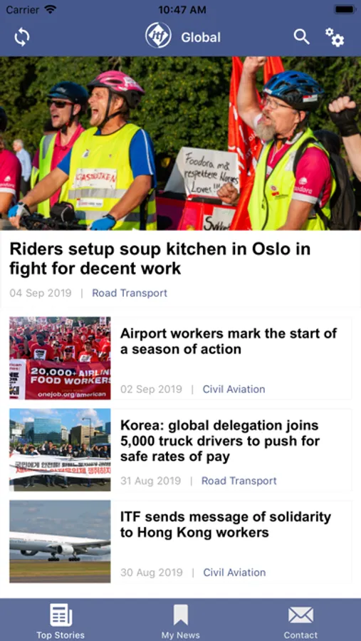 The ITF Global app brings you the latest news from the International Transport Workers’ Federation wherever you are. Download it now to your smartphone and get: