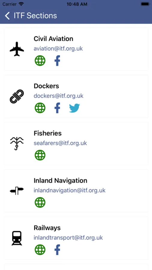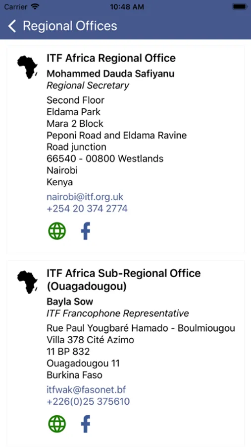 - contact details for the ITF, our regional offices and our sections