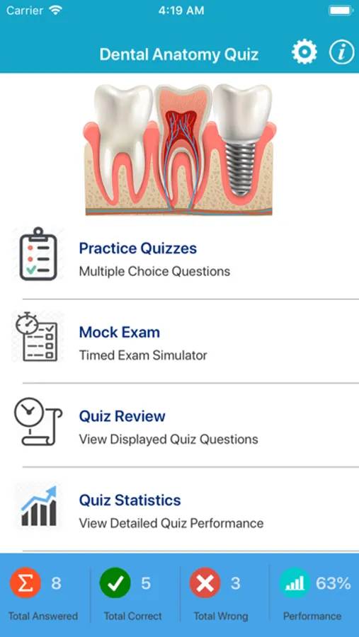 Test and improve your information answering the questions and learn new knowledge about dental anatomy by this app.